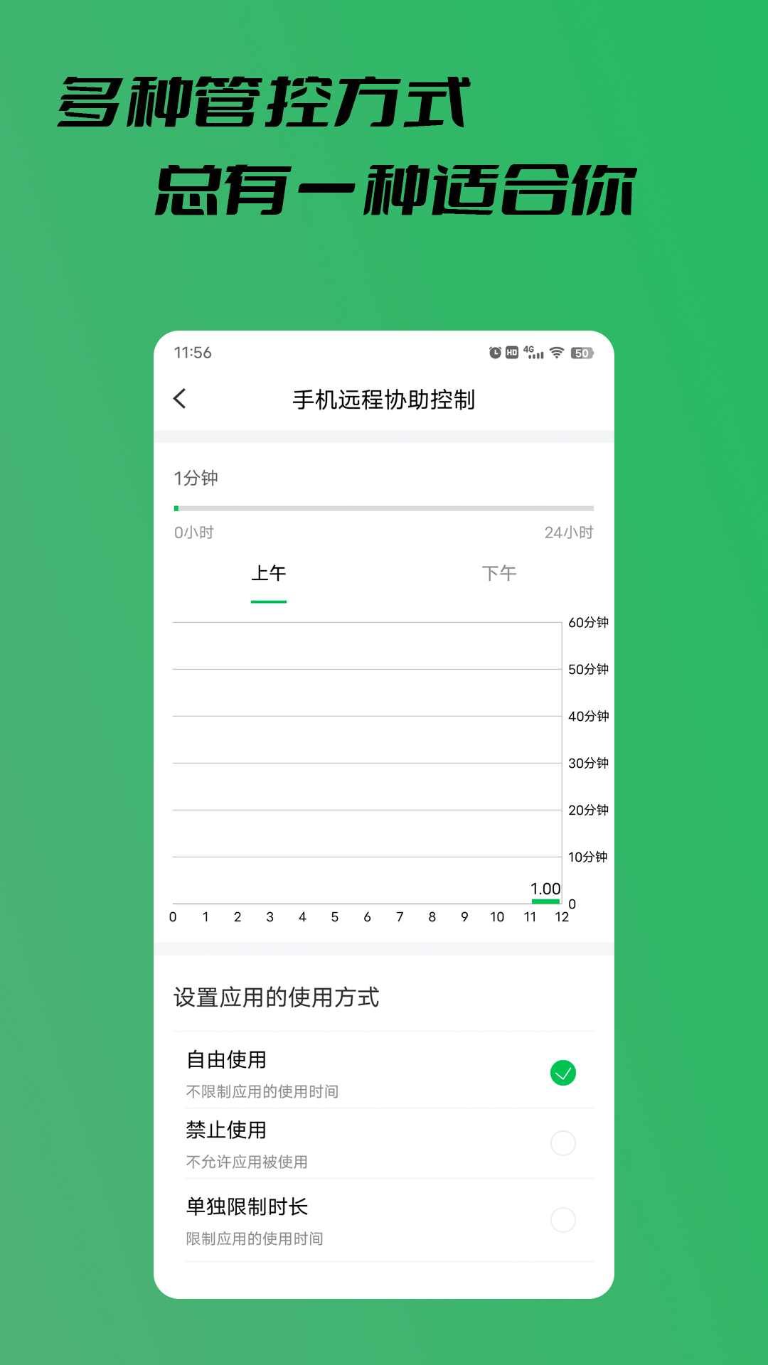您可以限制應用可使用時長,或者直接禁止使用,也能多個應用一起限制使用時長,使用時間到達后軟件會自動關閉,幫助您遠程管理好孩子手機使用