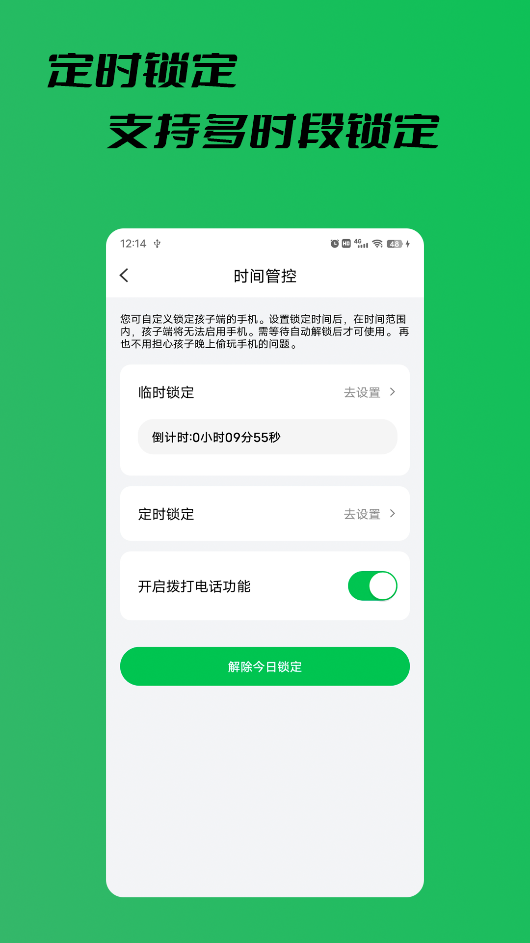 設定好指定時間與時長,指定時間到達后即可開始鎖定時長到達后會自動解除鎖定